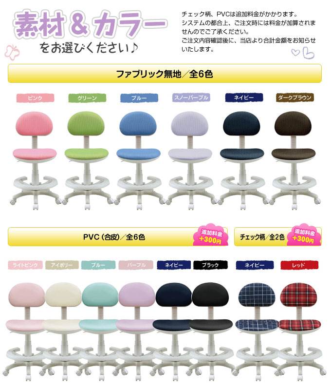 【4/9 20時〜エントリーでP10倍!】学習回転チェア ステップ5 素材とカラーが選べる 全14種 脱着式足置きリング ファブリック/合皮 無地/チェック柄/PVCレザー 学習チェア/回転チェア/勉強椅子/学習椅子/キッズチェア